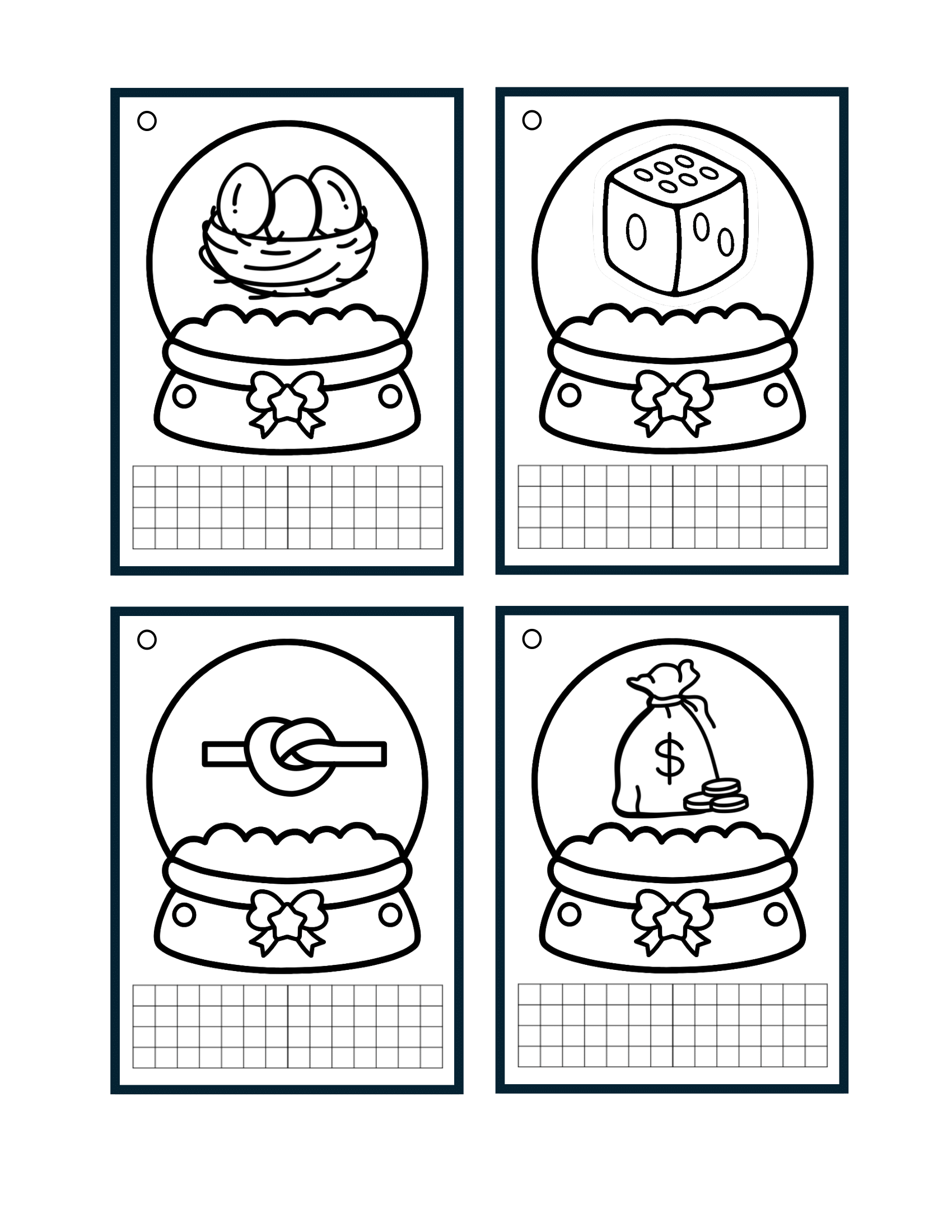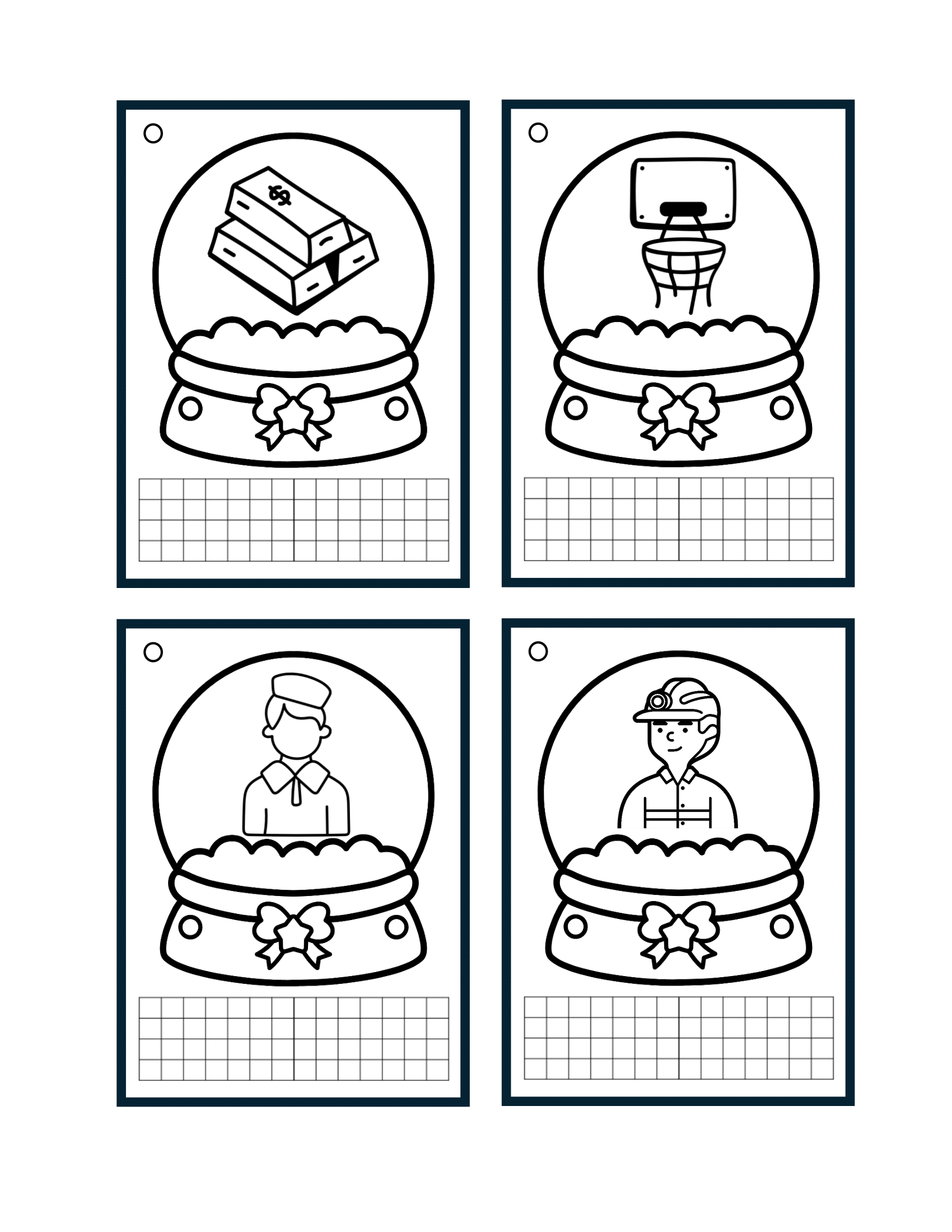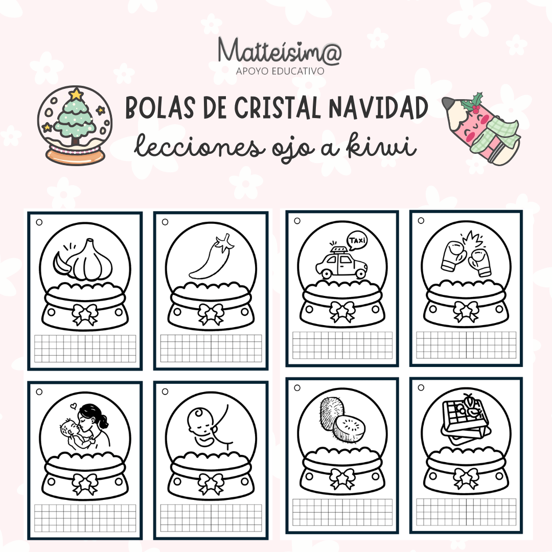Tarjetas para realizar repaso de las lecciones minúsculas Matte mediante el formato de bolas de cristal alusivo a navidad.