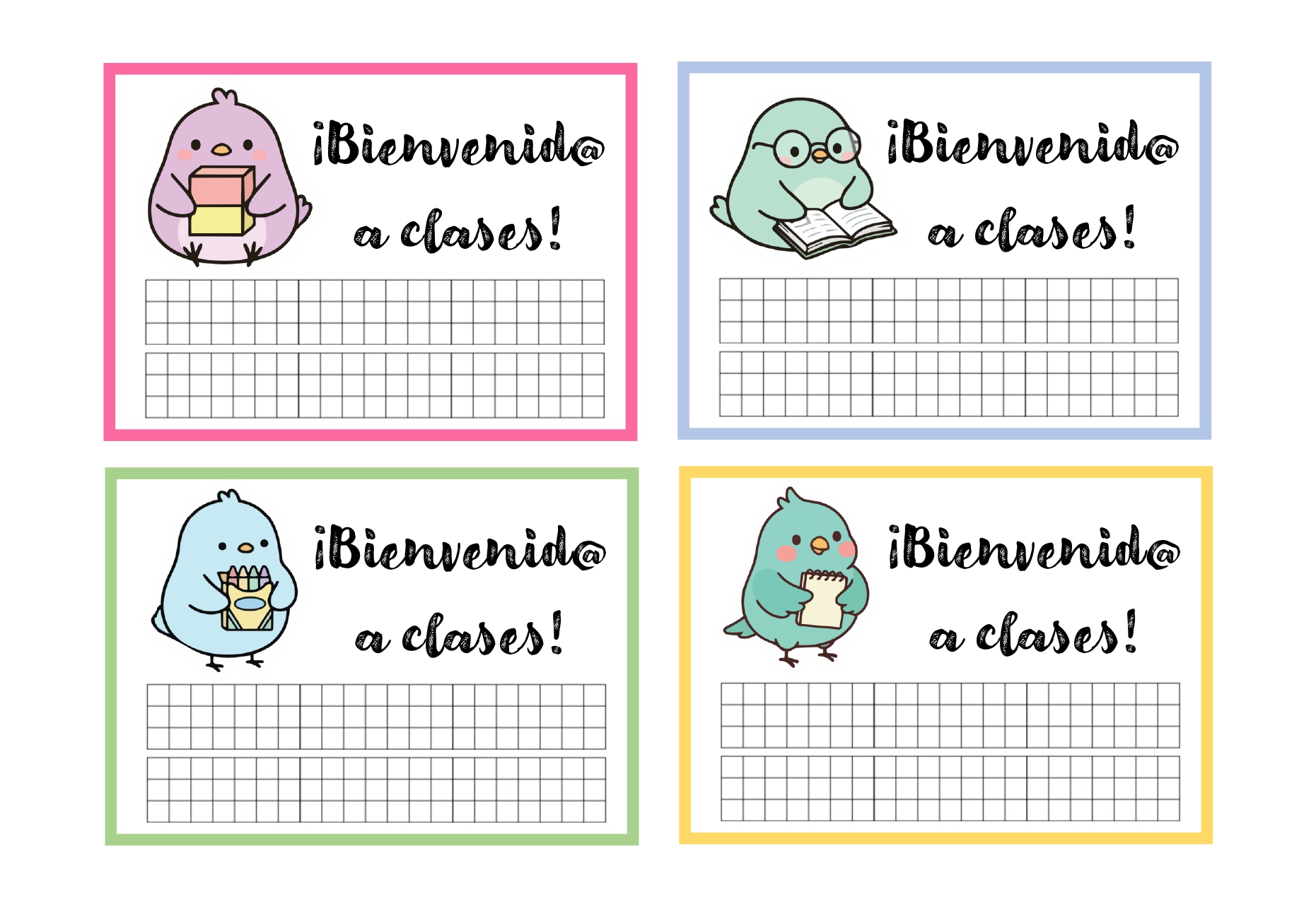 PDF con 24 tarjetas de identificación para estudiantes en la bienvenida a clases.